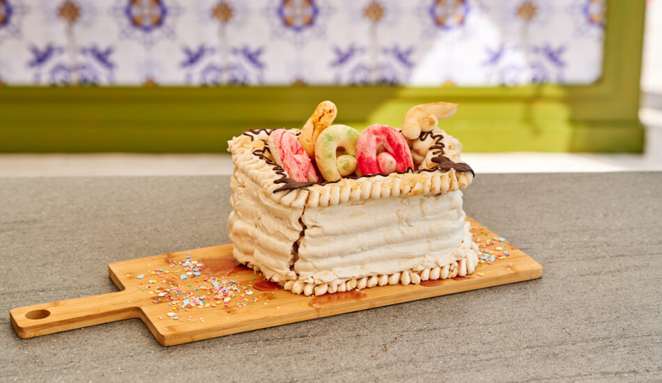 - Besmeer het bouwwerk met de overgebleven meringue en strijk dit glad.