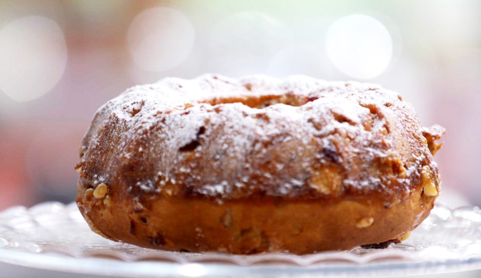 - Plaats de tulbandvorm in de voorverwarmde oven, draai de temperatuur naar 200 graden en bak het brood in 35 minuten goudbruin en gaar (kerntemperatuur van 95 graden).